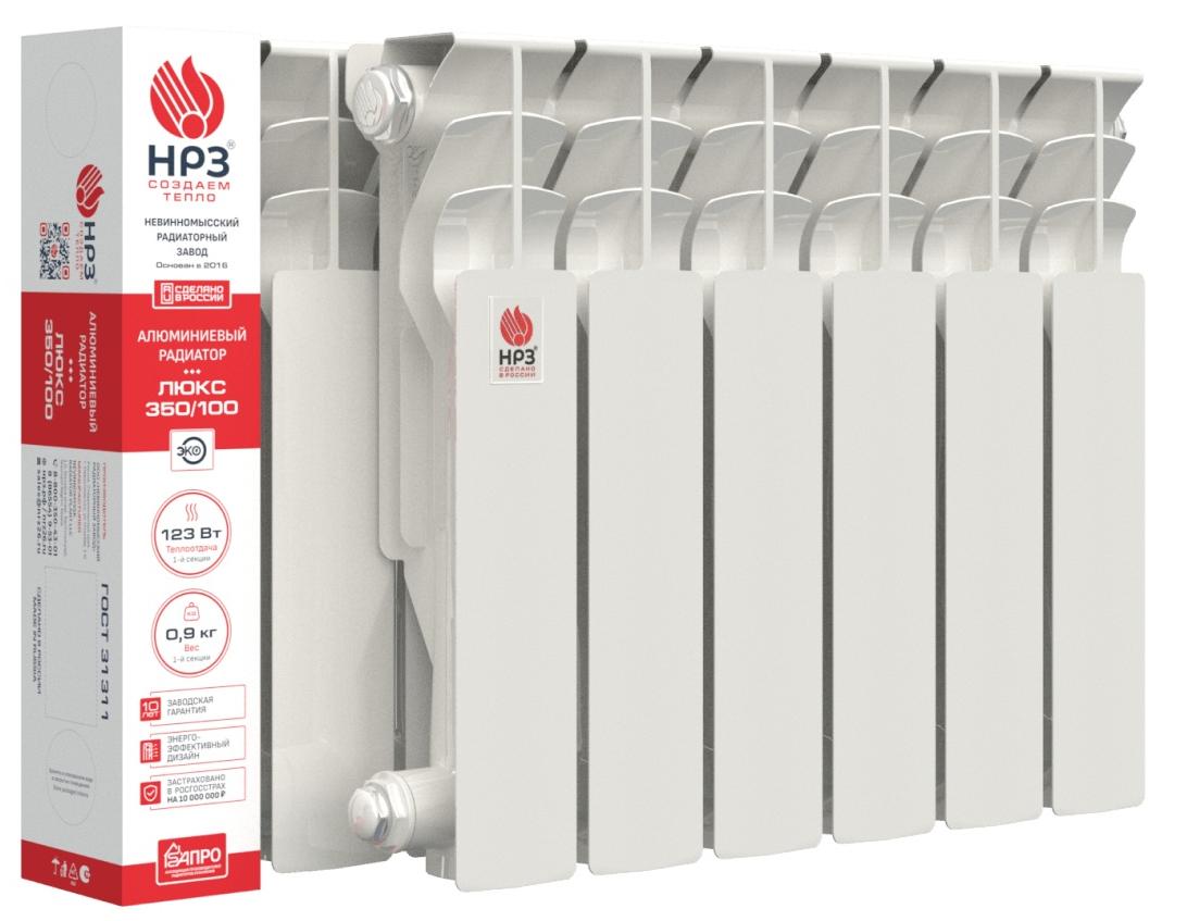 Радиатор алюминиевый НРЗ серия ЛЮКС 350/100 14 секций вес 0,8кг 121Вт