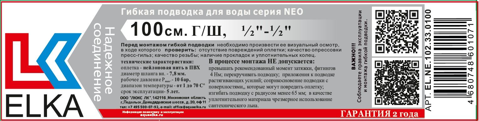 Гибкая подводка NEO обеспечит вам гарантию безопасной и долгой эксплуатации вашего оборудования.