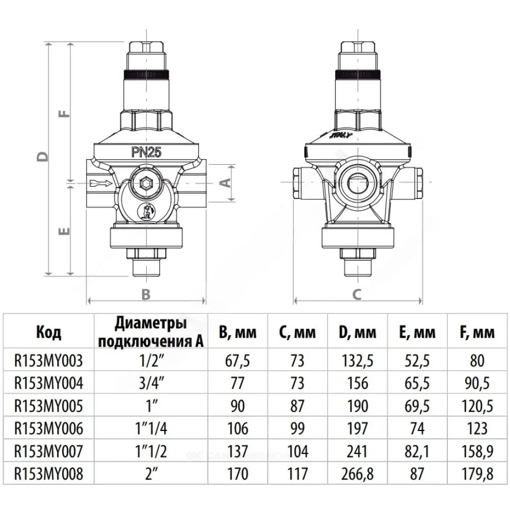 Конструкция клапана гарантирует большой расход при минимальном отборе воды.R153M характеристики: