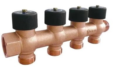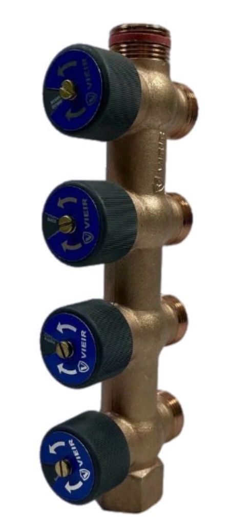 Коллектор VIEIR с регулировочными вентилями 3/4"х3/4" 4 выхода под евроконус арт VR507-4.