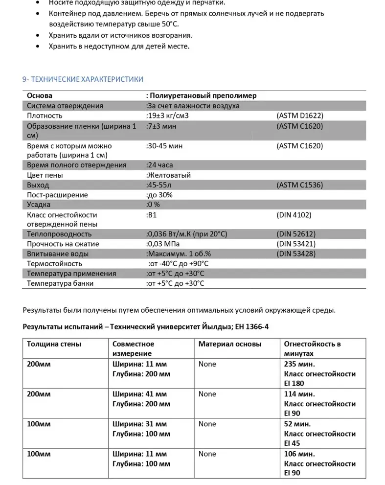 - Выдерживает огонь в течение 235 минут согласно стандарта EN 1366-4.
