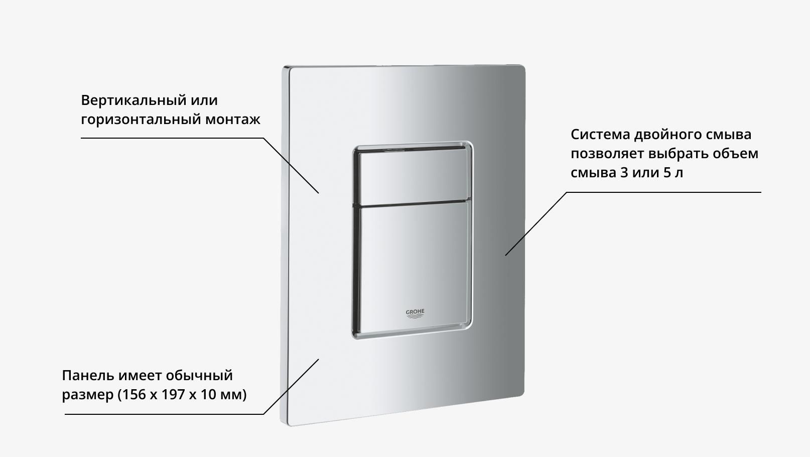 Инсталляционные системы Rapid SL имеют большое количество преимуществ. Созданные с применением технологии GROHE Whisper® для повышенного уровня шумоизоляции системы инсталляции серии Rapid SL предоставляют оптимальный уровень защищенности от шума. Благодаря технологии двойного смыва GROHE EcoJoy®, водопотребление инсталляционных систем Rapid SL может быть снижено на 50%, тем самым уменьшая ваши расходы за коммунальные услуги. Благодаря технологии GROHE QuickFix®, вы установите инсталляционную систему в мгновение ока. Вам не понадобится никаких инструментов для подключения водоснабжения к инсталляции и ревизионного окна бачка. В комплект инсталляционной системы входит смывная панель Skate Cosmopolitan цвета хром. Для максимальной безопасности, стальной каркас рамы инсталляции сертифицирован при нагрузке свыше 400 кг. Установленный перед стеной или в гипсокартонную перегородку, подвесной унитаз и бачок скрытого монтажа обеспечивает оптимальный уровень гигиены и простоту уборки ванной комнаты. Данный комплект поставляется совместно со смывной панелью Skate Cosmopolitan, хром