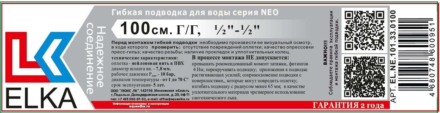 Гибкая подводка NEO обеспечит вам гарантию безопасной и долгой эксплуатации вашего оборудования.