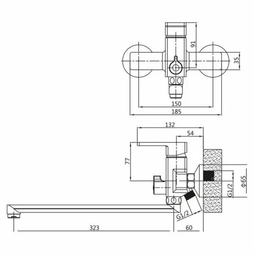 Смеситель для ванны длинный поворотный излив VIEIR D35 (1/10)