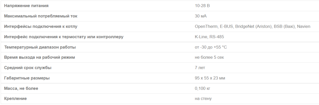 Универсальный адаптер цифровых шин предназначен для подключения термостатов и контроллеров ZONT к газовым и электрическим котлам, работающим по цифровым протоколам OpenTherm, E-BUS, BridgeNet (Ariston), BSB (Baxi), Navien – проверить наличие шины в конкретной модели котла.